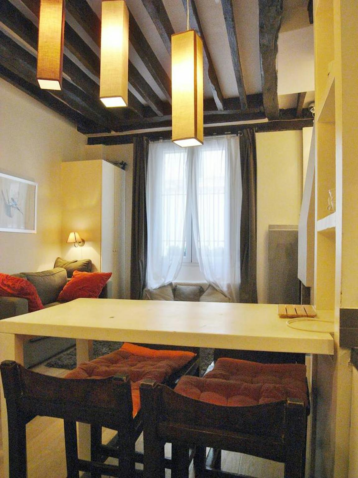 The second bedroom is in a mezzanine upstairs and is equipped with a double bed. All the facilities are included: big flat screen TV, internet, telephone, washing machine, dishwasher, microwave, etc, but the most interesting thing of this apartment remains its magic position, on the Saint Louis Island, in the heart of the river Senna and in the heart of the town.