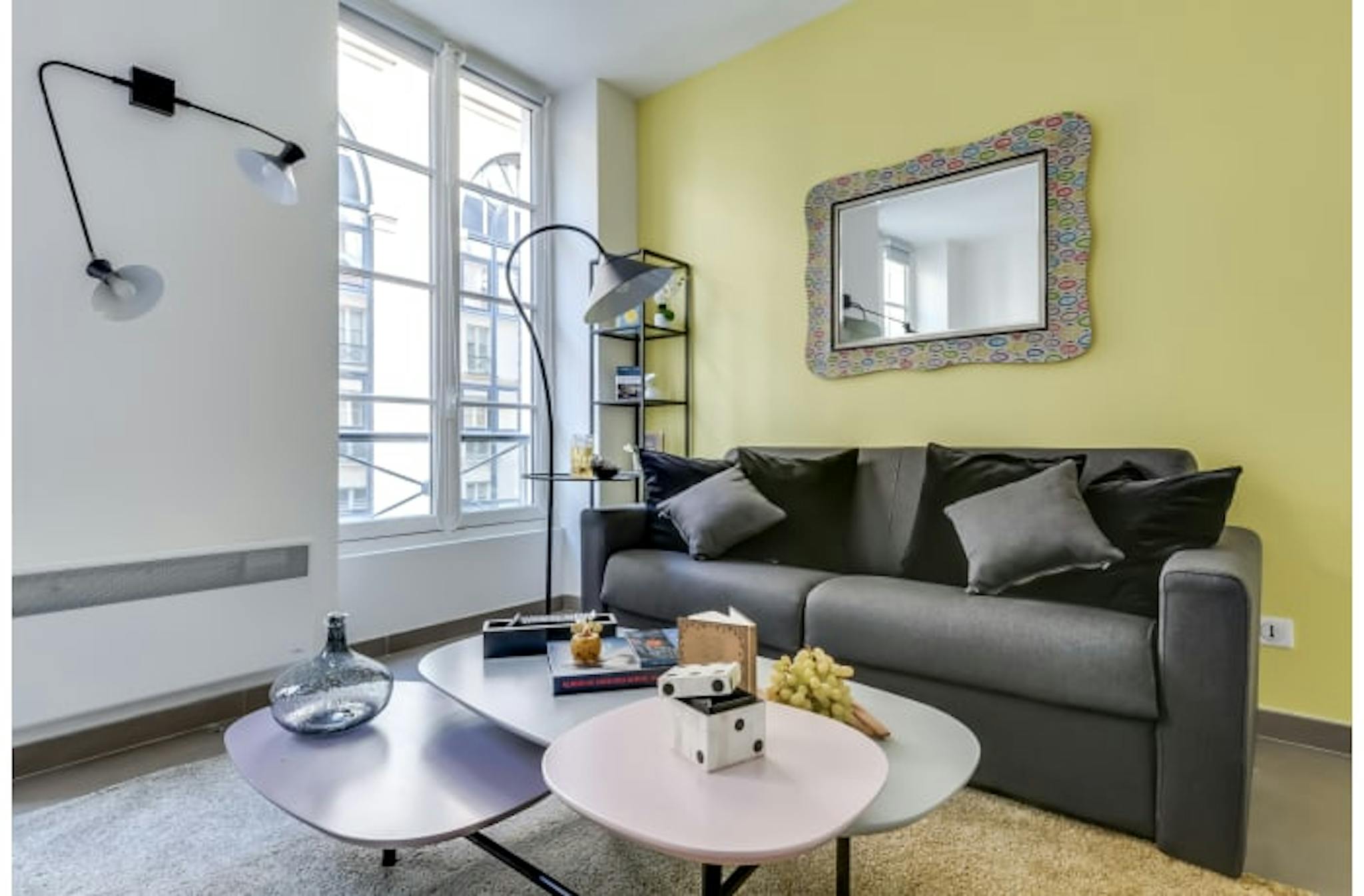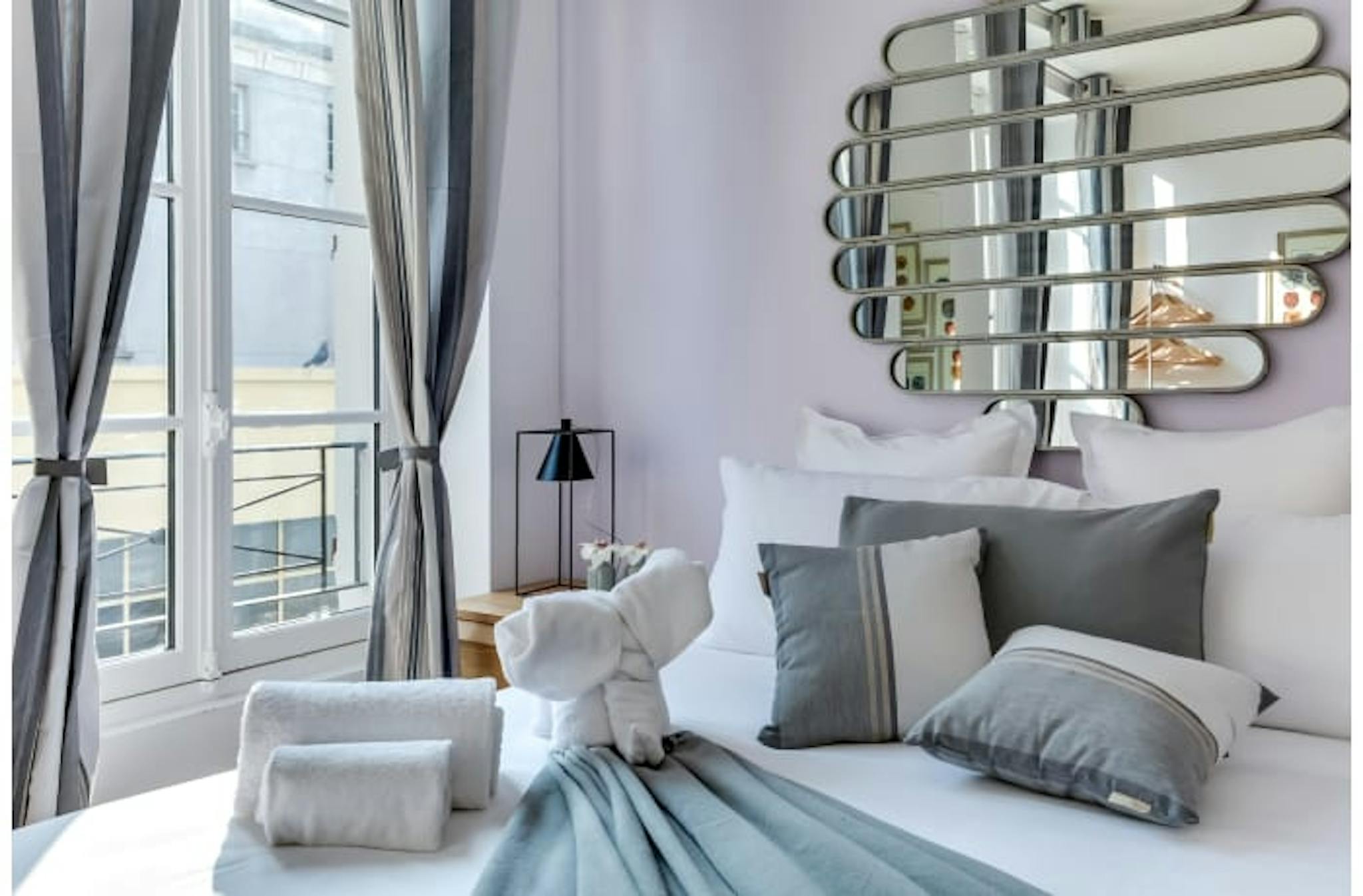 Located in the trendy Grands Boulevards-Opera neighbourhood, the 2-bedroom Enghien I vacation apartment is steps from the most beloved sites in Paris. Here in the 10th arrondissement, parks, monuments, and chic sidewalk cafes surround you. A pleasant walk brings you to Rue Montorgueil (15 min), the pedestrian market village. The striking Pompidou Centre is a few minutes further, with diverse entertainment and the National Museum of Modern Art. Drive to the stunning Galeries Lafayette (9 minutes) for incredible shopping. The Bonne Nouvelle metro station is only a few minutes away on foot, as are several bus stops.