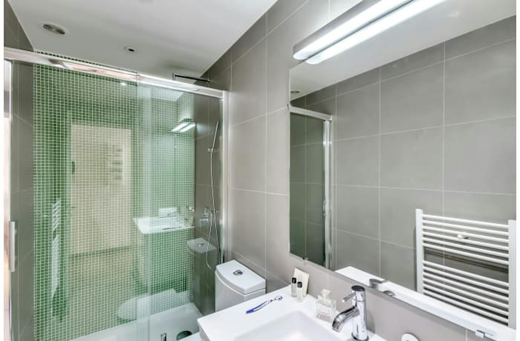 Located in the trendy Grands Boulevards-Opera neighbourhood, the 1-bedroom Enghien V vacation apartment is steps from the most beloved sites in Paris. Here in the 10th arrondissement, pubs and an electric nightlife are down the block or head to the Grand Rex Theatre to spot stars and enjoy a show (5-minute walk). Shoppers will take delight in the close proximity to Galerie Lafayette (9 minute-drive) and to the famed market street of Rue Montorgueil (15-minute walk). Bus stops and the Bonne Nouvelle metro station are only steps away.
