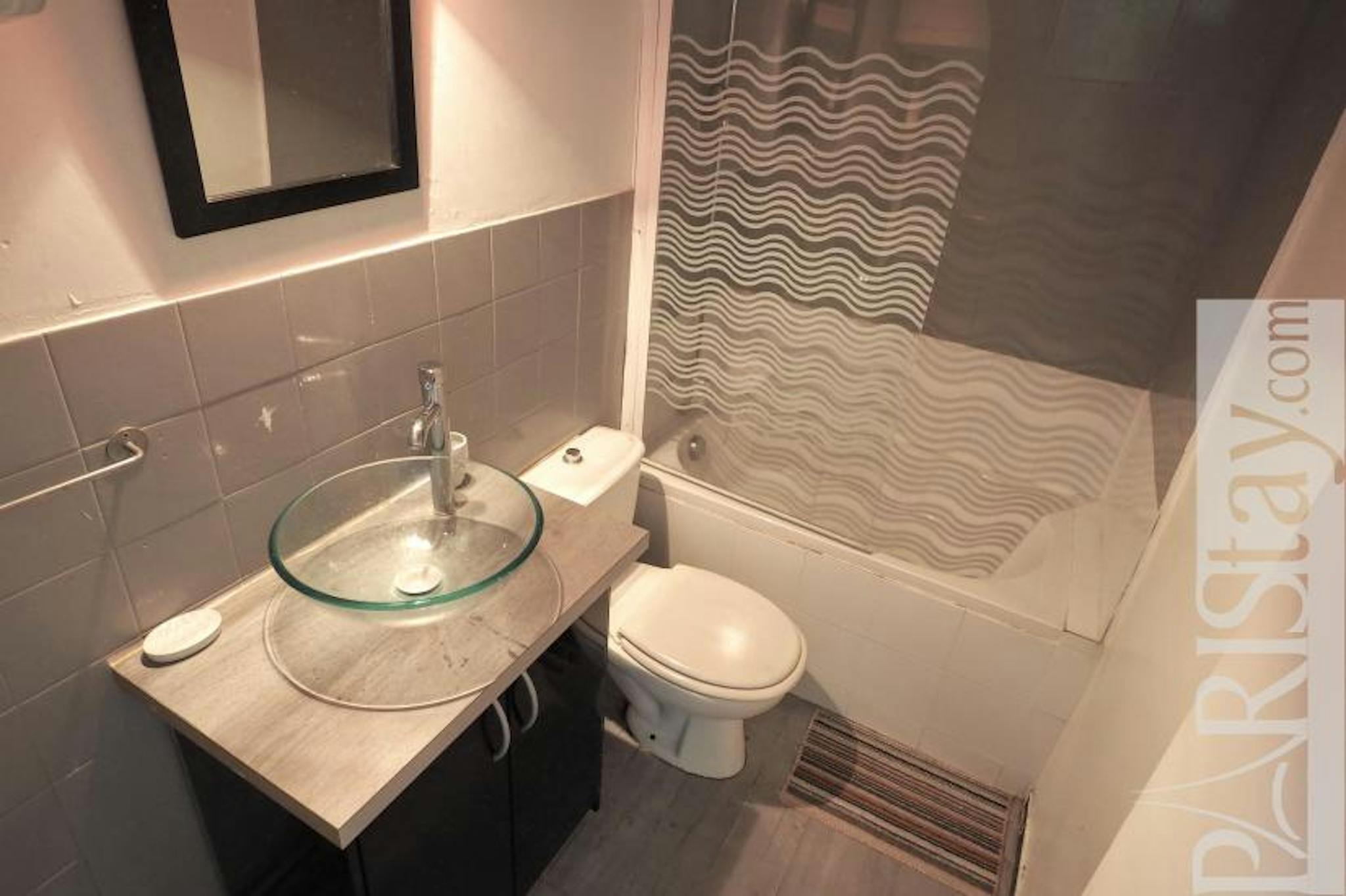 L'appartement offre un séjour spacieux avec un canape lit et avec une cuisine americaine équipé, une chambre confortable avec un lit double et un grand rangement, une salle de bain avec baignoire . L appartement est tres clair avec 4 fenetres