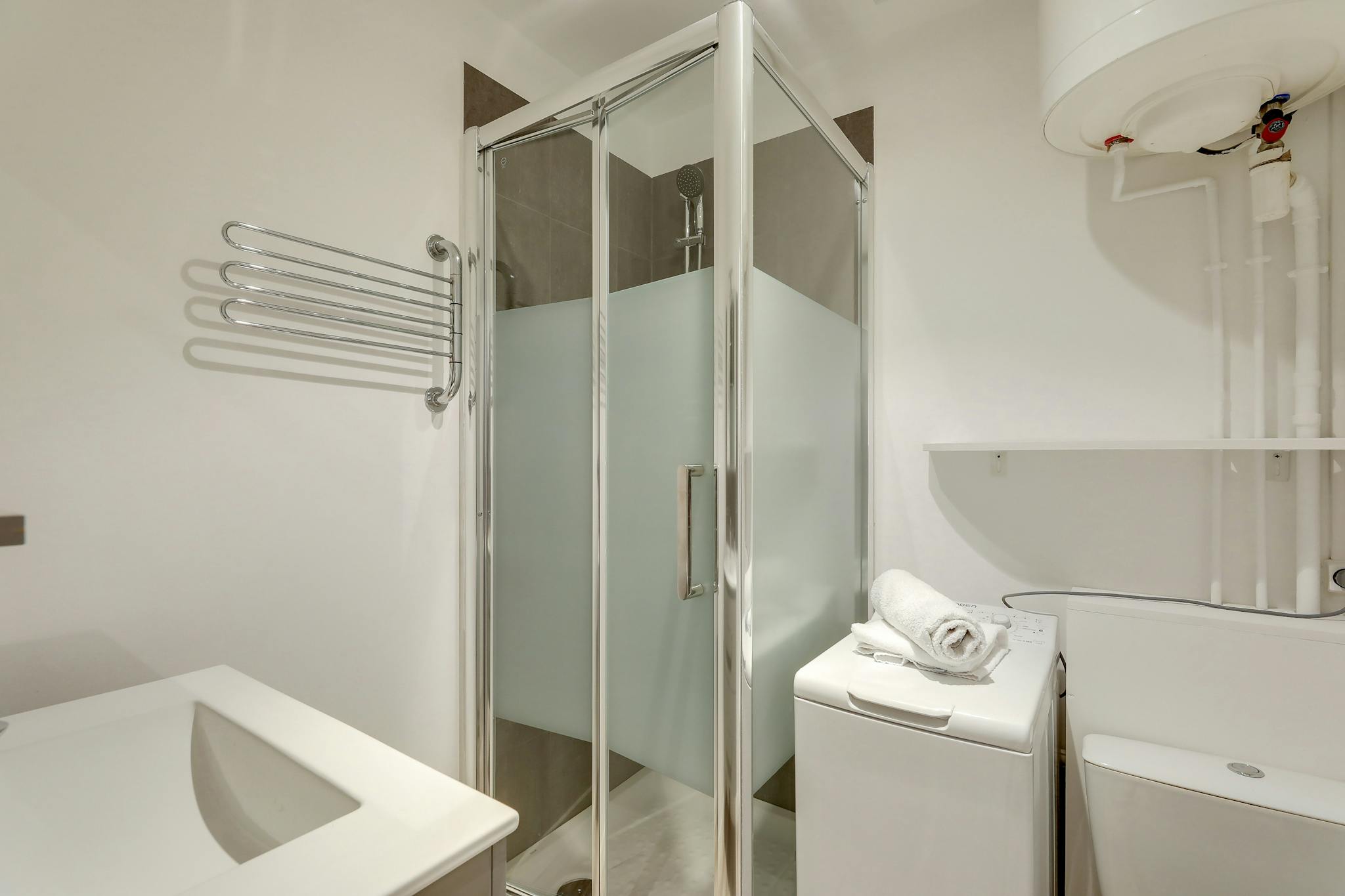 Magnifique appartement 2 pièces de 43 m², rénové et bien décoré dans Paris intramuros, métro Rambuteau (3 min à pied) et commerces et bars à proximité. Plusieurs espaces de rangement, une grande chambre avec un lit queen size. Séjour lumineux et spacieux avec table basse, wifi, télévision et une table. Véritable cuisine équipée avec table à manger. Salle de bain avec douche + WC et machine à laver. Grande entrée avec placard.