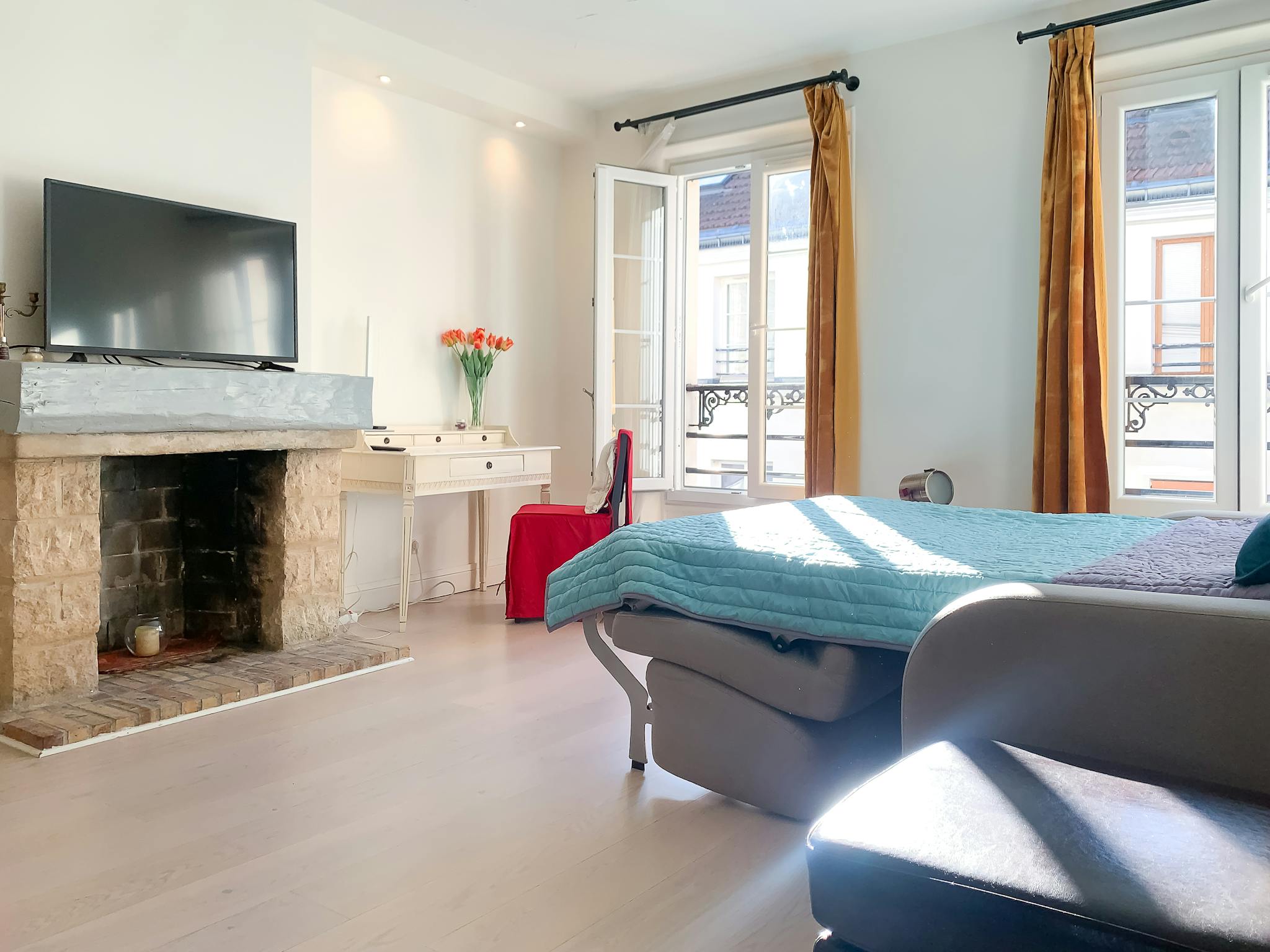 Located in the heart of the Latin Quarter, a stone’s throw from the lively Place de la Contrescarpe and its many brasseries, bars and restaurants, our large studio apartment of 32m2 is located in the lively part of the famous Rue Mouffetard, with the atmosphere of small village with its food shops, its church and its shops.