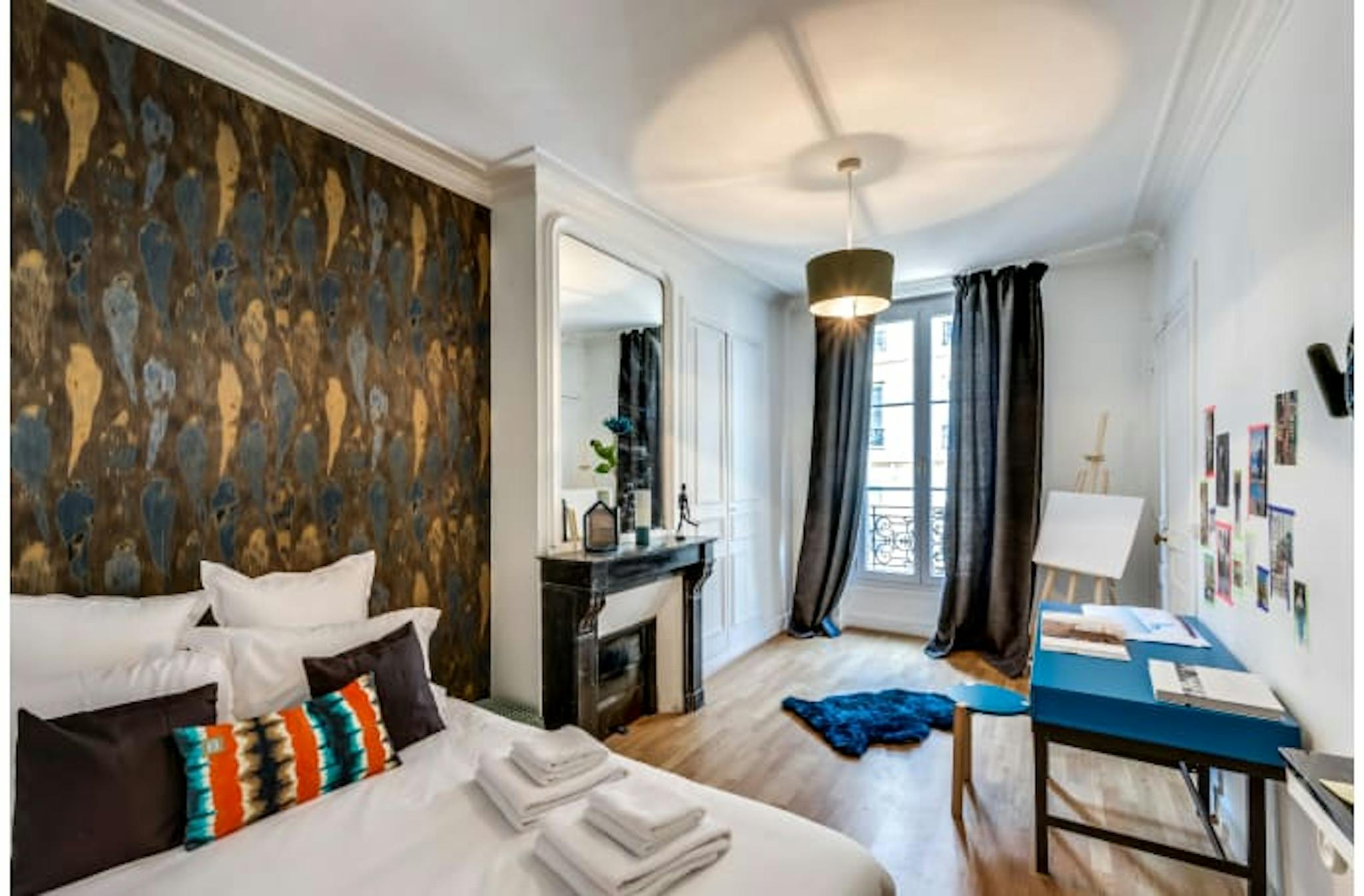 Inspired by the timeless elegance of Paris, our local interior designer has created a lovely, inviting space. Picture windows, marble fireplaces, and vintage patterned wallpaper gives this apartment its old-world appeal. The fully equipped kitchen has everything you need to master the art of French cooking. Children will love the charming play nook and the colorful decorative accents. Premium amenities include free WiFi, cable TV, hotel beds and linens, luxury toiletries, and a Nespresso machine.