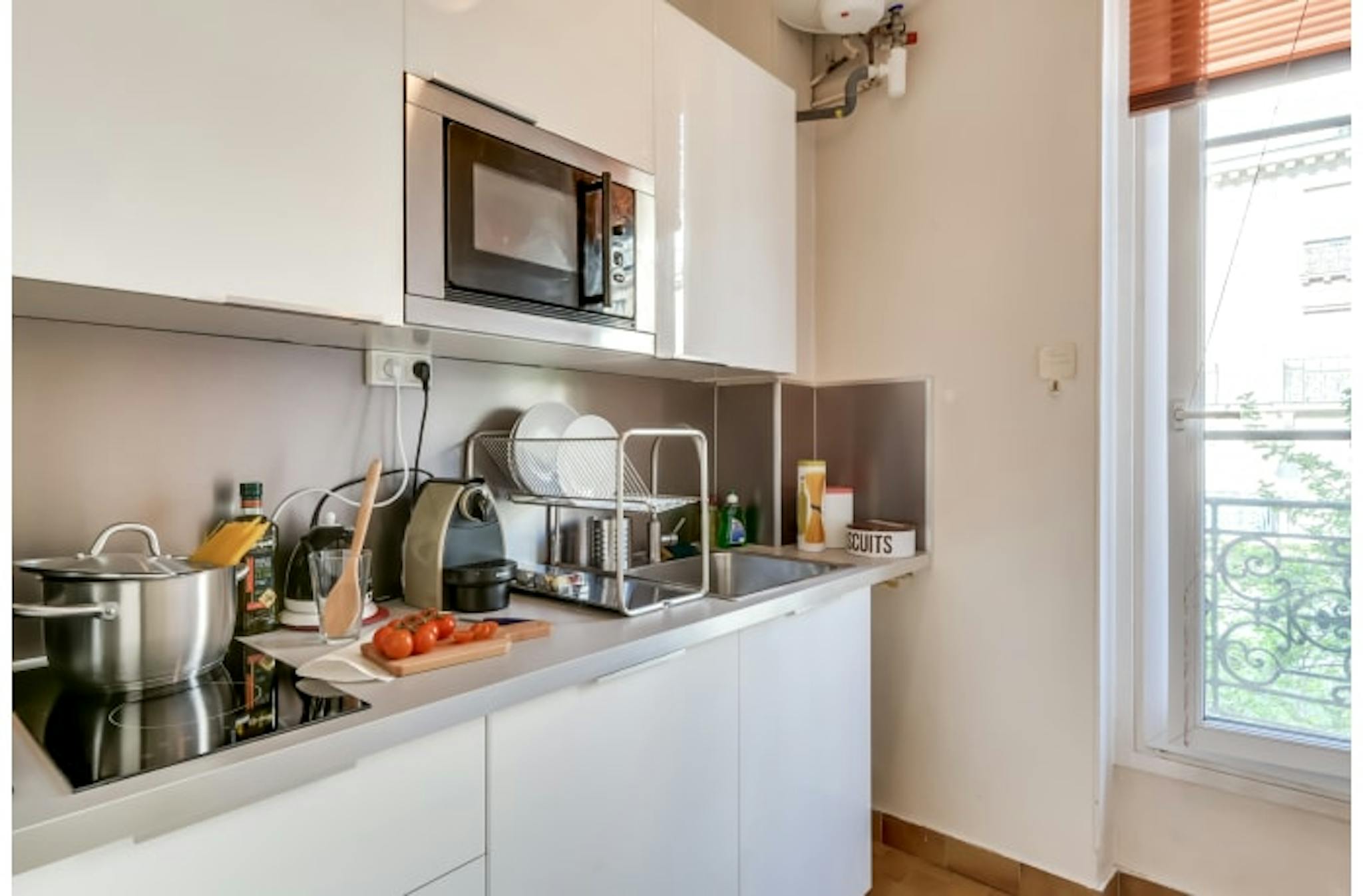 In the bustling Les Halles neighborhood, the cheerful Lescot vacation apartment welcomes guests to Paris. Here in the 1st arrondissement, trees line the cobblestone streets, and sidewalk cafes invite you to sip cafe like a Parisian. World-famous shopping is down the block at Les Halles (5 minute walk), and you’re an arm’s length from gourmet bakeries, cheese shops, and restaurants. Visit the fashion houses of Rue Saint-Honore (10 minutes on foot) as you stroll onwards to the Louvre Museum and the Palais Royal. The Etienne Marcel metro station is a 2-minute walk, as are several bus stops.