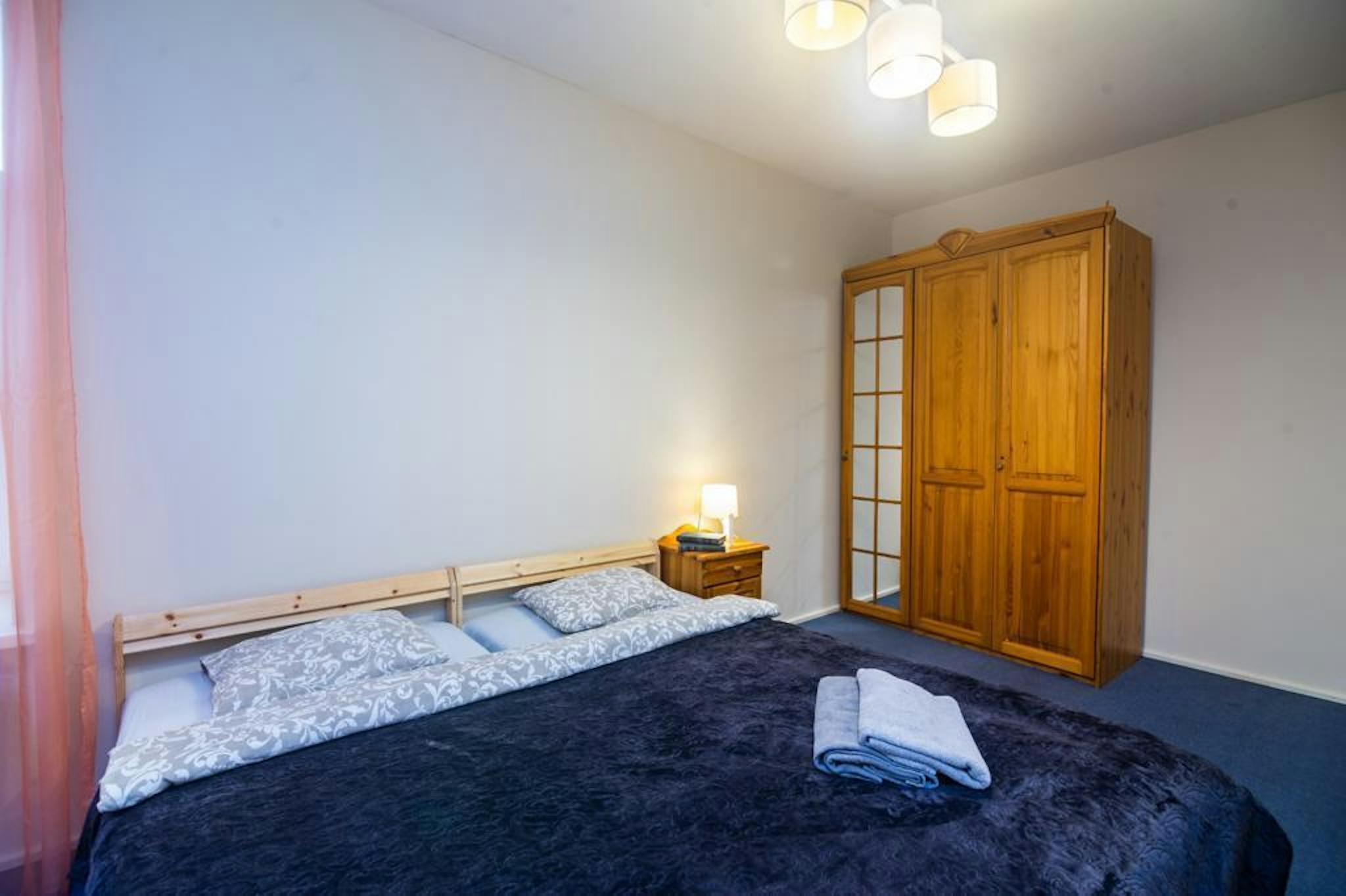 Spacious sunny apartment with excellent location. Everything you need for a short visit or a long stay. Washing machine, kitchen, and comfortable bedrooms. Near the apartment everything you need for your stay - a grocery store, the transport hub of the city, transport to the airport, a hygiene goods store, and a wine store. Leave your worries behind in the peaceful atmosphere of this unique property.