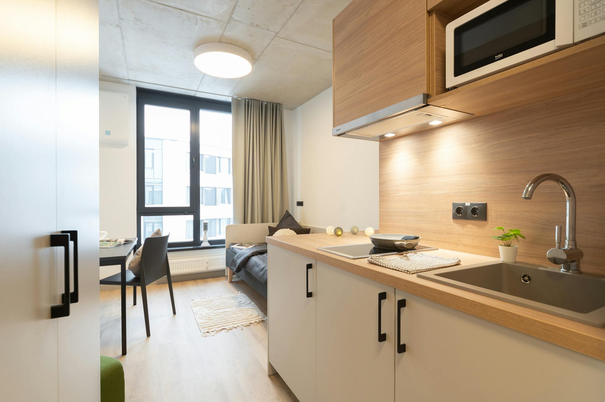 This is a student and young professionals modern accommodation with private fully furnished room, which includes private kitchenette with all necessary utensils, private bathroom with shower and wc.