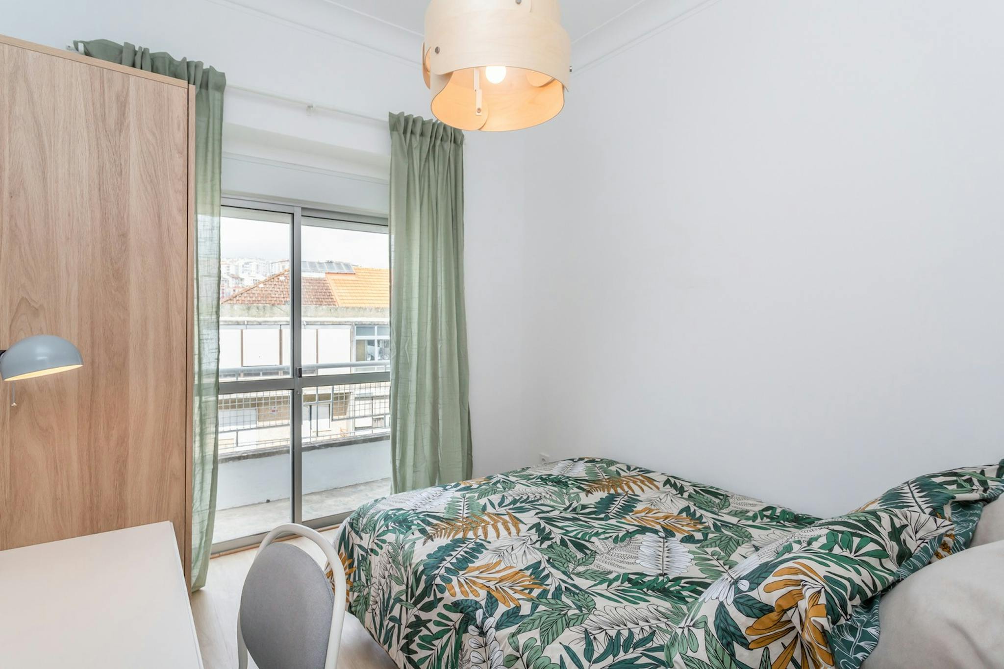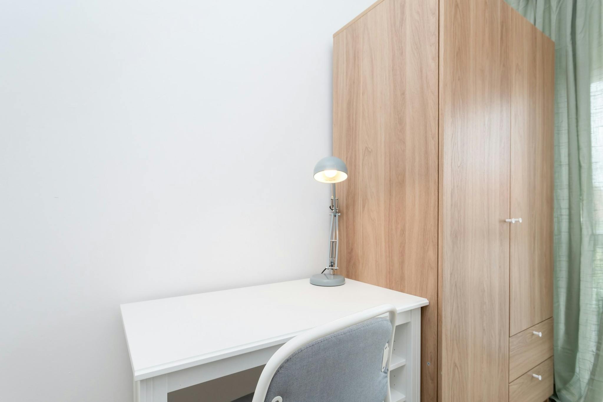 The modern and comfortable room has a quality bed and mattress, desk and storage. The room has lots of natural light.
