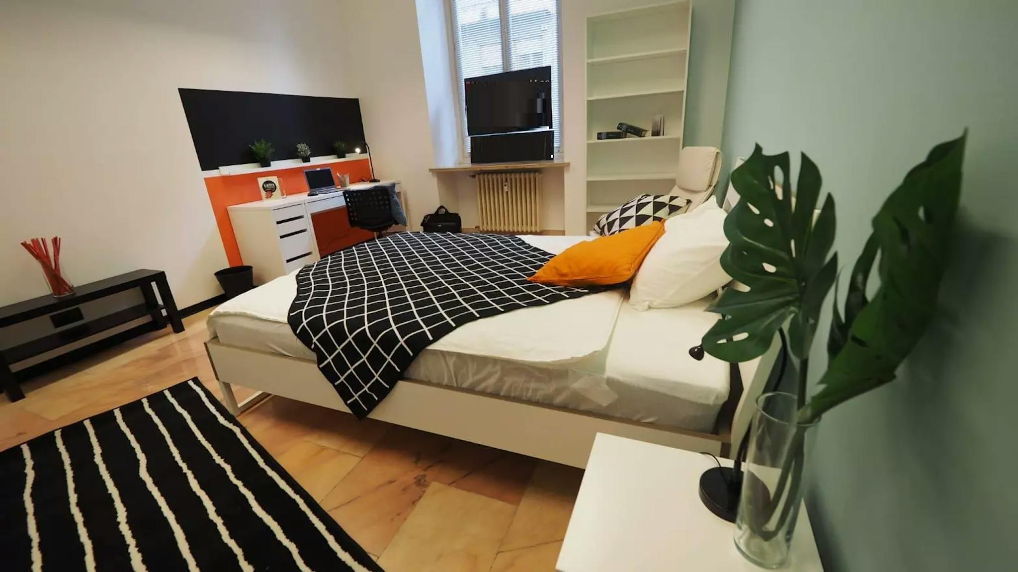 Zona Centro Piazza Statuto, strategic and sought-after location, we rent a beautiful single suite Stanza Semplice which has been specially renovated to offer comfort and convenience to our students. The room is equipped with 1 1/2 square bed, 3-door wardrobe, desk with storage, chest of drawers, TV cabinet, relaxation armchair, bedside table, curtains, mirror, bookcase. The colours of the walls promote a good mood and help in the study.