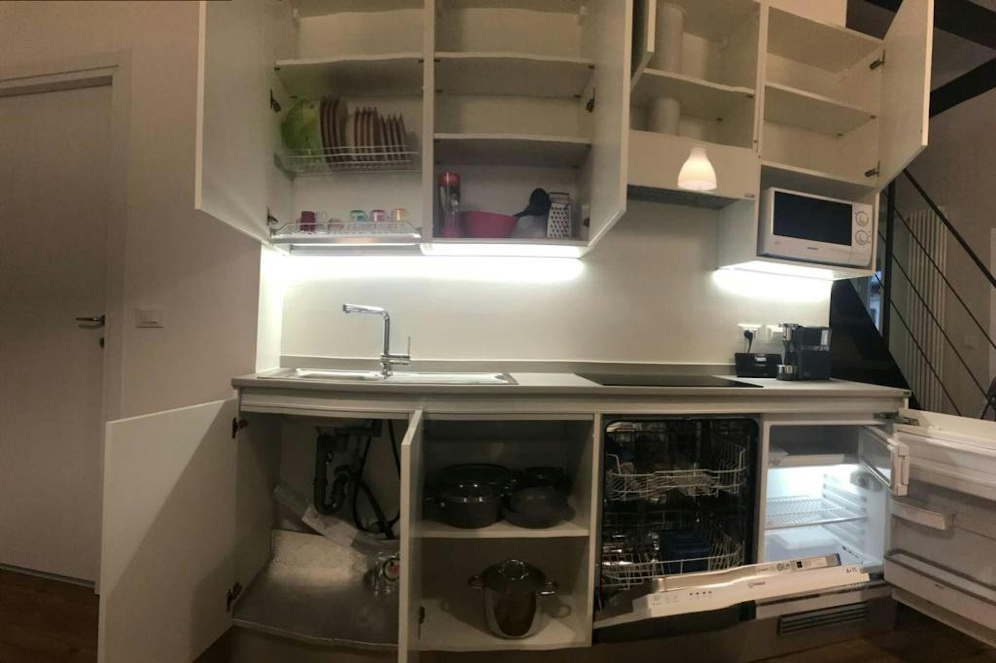 The apartment is fully furnished and equipped: linen, washing machine, dishwasher, oven, air conditioning, heating, coffee maker, kettle and Wi-Fi!