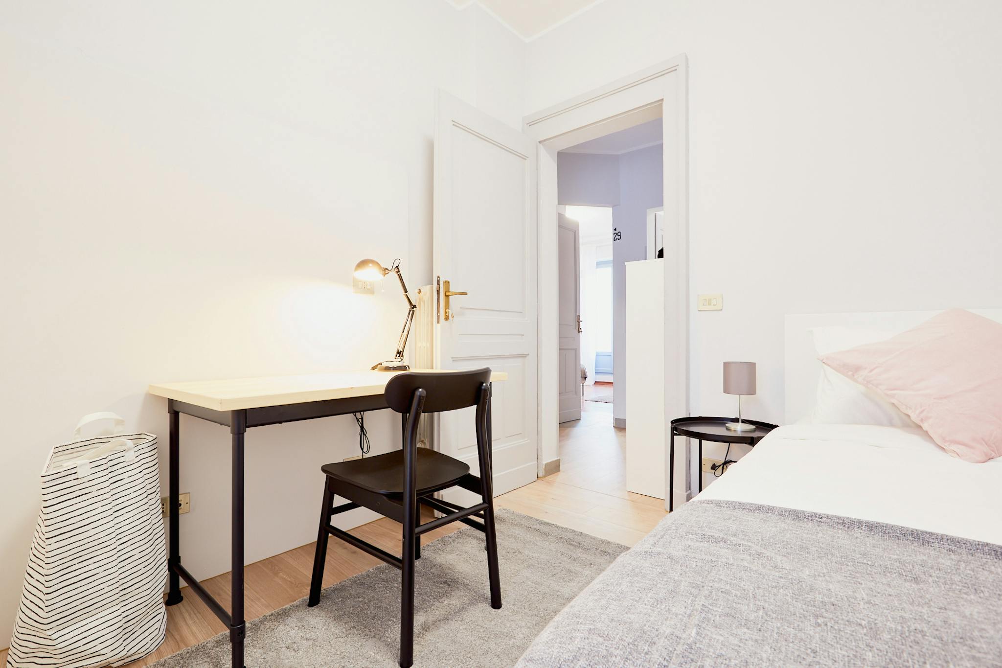 Our rooms come fully furnished with a premium mattress, a wardrobe, a warm carpet, a desk and chair. Of course, pillows, bedsheets and small items such as a bed-side table and a small lamp are always included. Depending on your needs, you can choose a single or a double bed, a balcony or even a shared or private terrace.