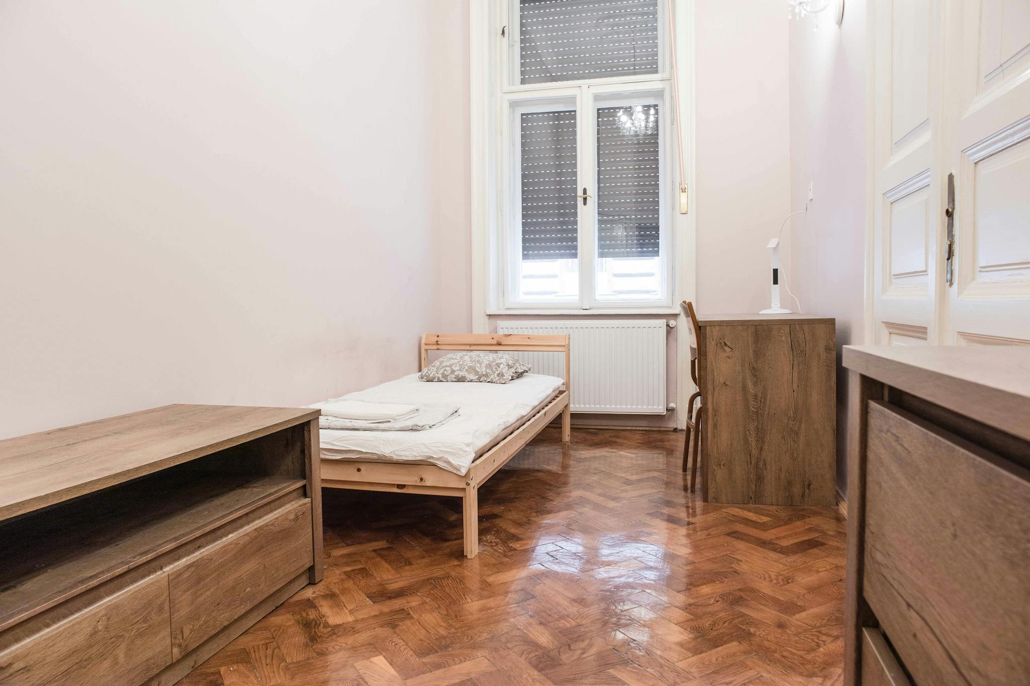 Blaha Lujza square M4 metro and 4&6 tram stop is just downstairs. 78sqm, 4 rooms ,1 kitchen with equipped, dish washer, microwave, refrigerator, stove and oven,2 bathroom with shower&bath, toilet and basin. Each room has a double bed except the smallest room, a wardrobe, a table and a chair, a shelf etc.