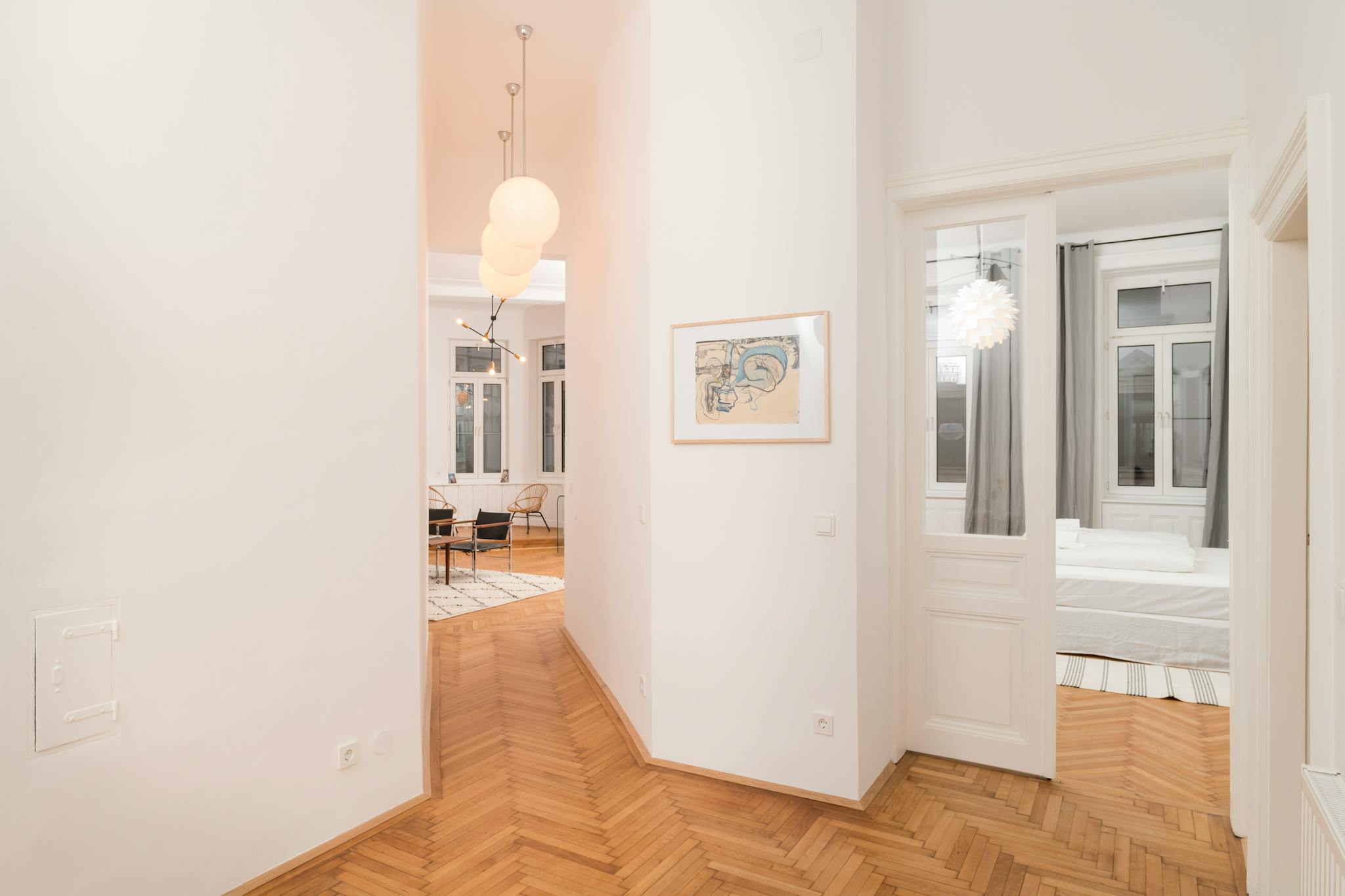 In the 19th district of Vienna this modernly furnished apartment awaits you. With a size of 80 square meters, the big double bed in the bedroom and the bright living room this apartment offers enough space for 2 people. The luxury bathroom with a nice and roomy shower offers relaxation after a busy day of exploring the city. The fully equipped kitchen invites you to prepare your own homecooked meals, which you can then enjoy at the dining table in the living room area. WiFi is available for free in the whole apartment and an airport shuttle can be arranged, upon request.