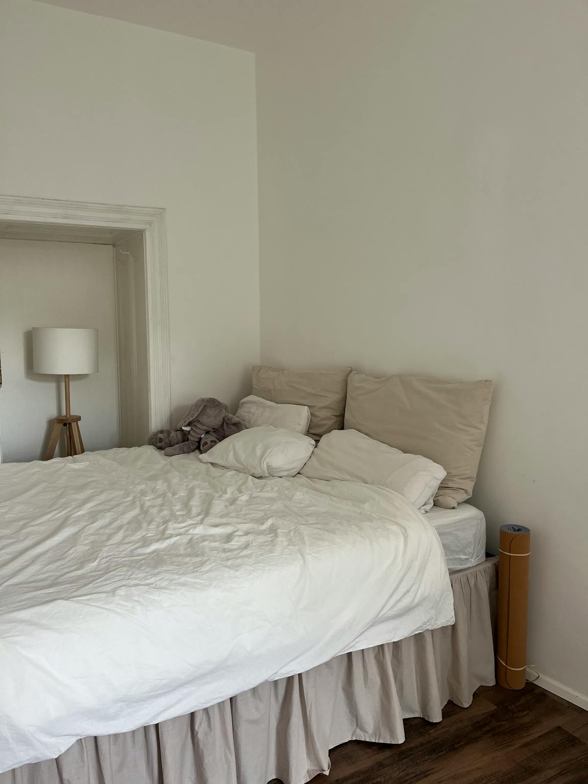 Dein Zimmer hat 17 qm mit Blick auf einen schönen Hinterhof. Es ist ruhig und hat ein großes Fenster, dass viel Licht reinlässt. Es ist ein renoviertes Altbau Zimmer mit hoher Decke und darin integrierten Lichtspots