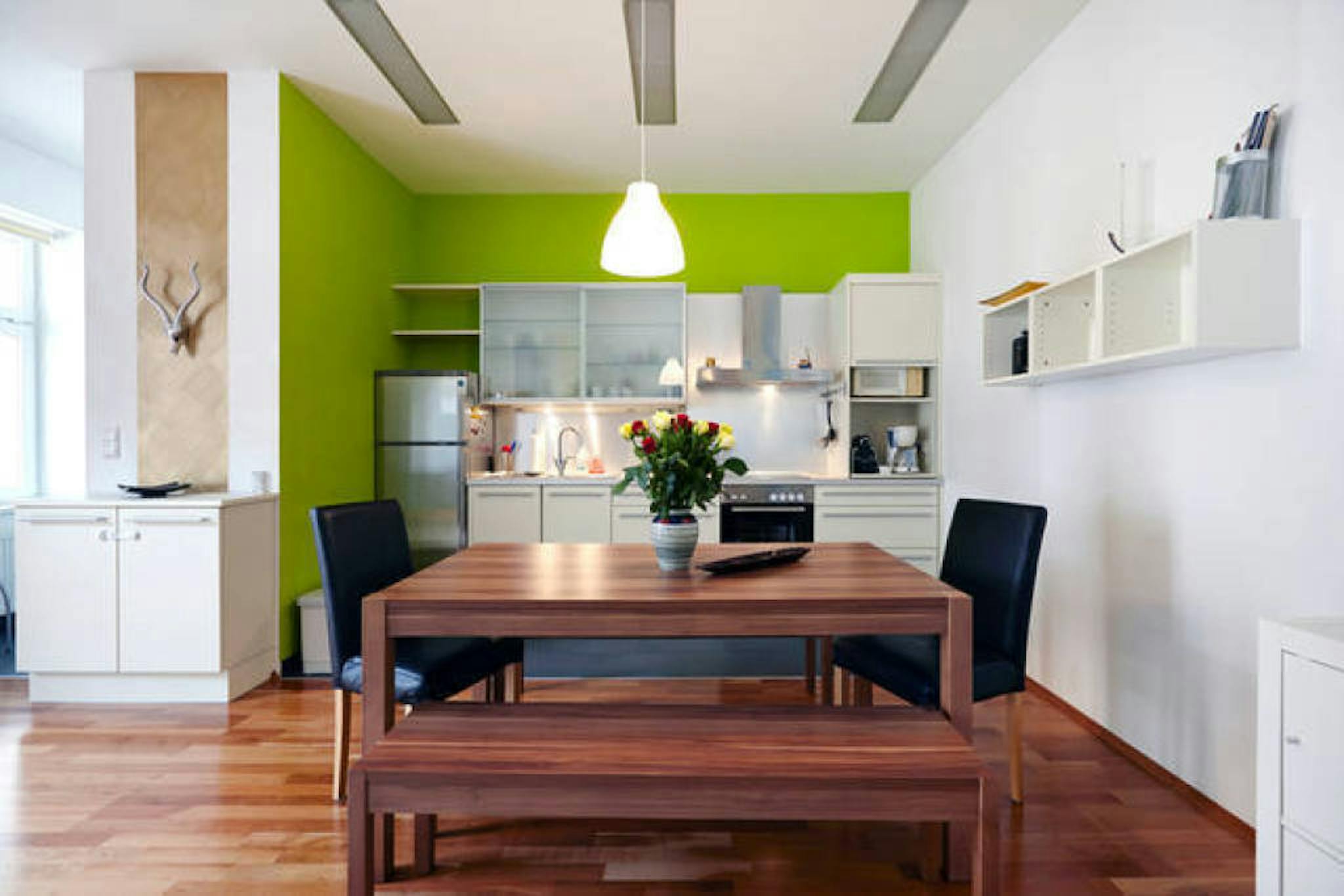 The house is a renovated old building and has a lift. There is a small basement and cycle storage.Bei längerfristiger Mietdauer kann auf die Ausstattungsbedürfnisse des Mieters eingegangen werden. Das kleine Zimmer kann sowohl als zweites Schlafzimmer, Kinderzimmer als auch als Büro möbliert werden.