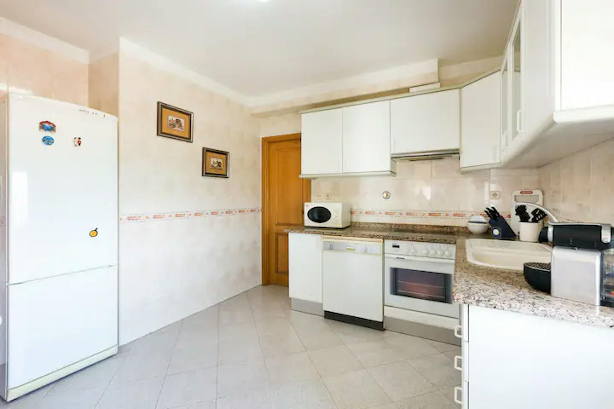 The kitchen is fully equipped with a washing machine, dishwasher, microwave, iron and coffee maker (coffee not included).