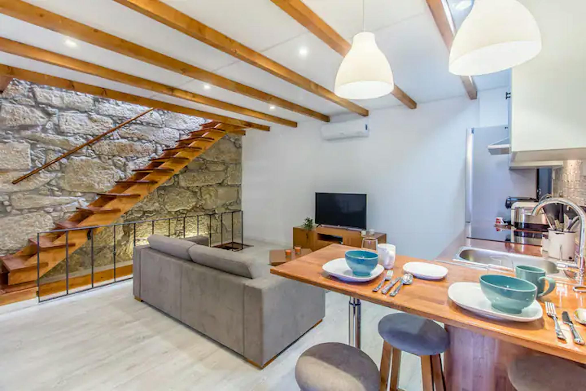 Beautifully decorated house, full of history and exquisite details. It has a very cozy atmosphere enhanced by the beautiful wooden stairways and authentic stone wall.