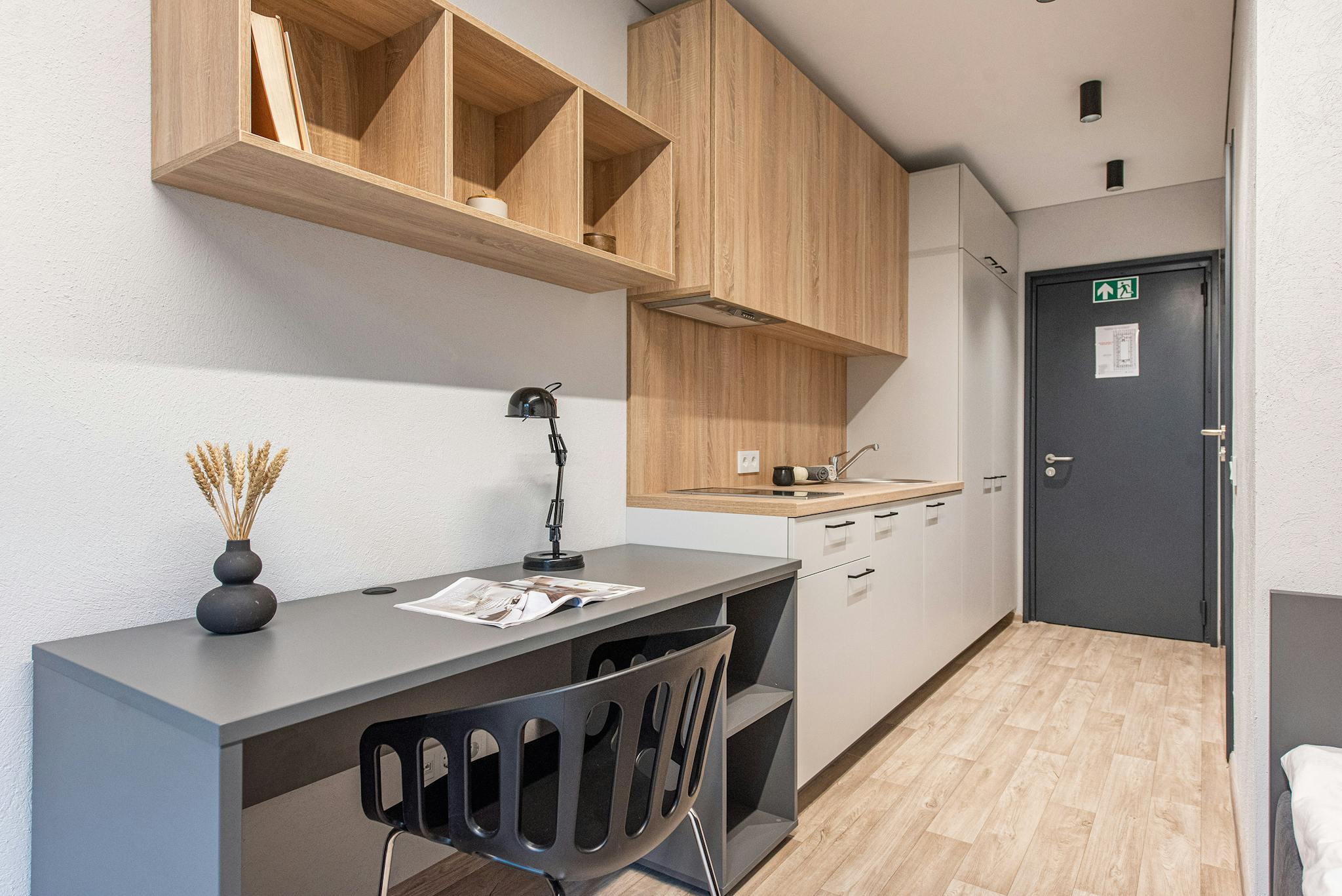 This is a new modern student housing in Vilnius, opened in September, 2022. We offer private fully furnished studios with private bathrooms and kitchenettes, co-working spaces, gym, games rooms, lounge areas, rooftop terraces and many more. Start your adventure choosing your student life here!