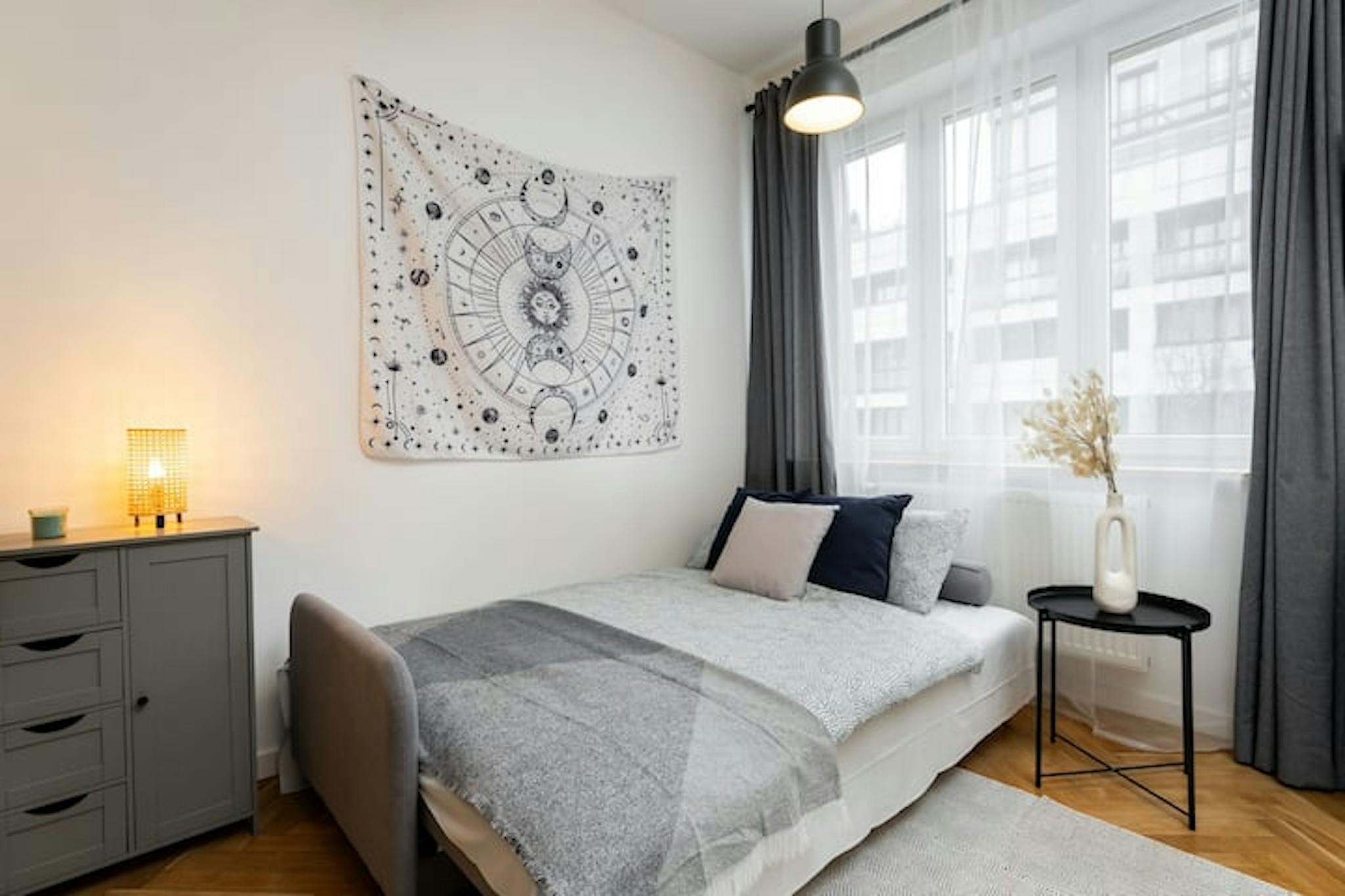 Spacious, newly renovated studio apartment in a quiet, green area with an excellent infrastructure. Studio has a double bed, a sofa, a fully equipped kitchenette and a bathroom with shower and washing machine. Close to parks, cafes and museums. 5 minutes to bus and tram stops, 10 minutes to the nearest metro station Raclawicka. We provide bed linens, towels, Wi-Fi and smart TV!