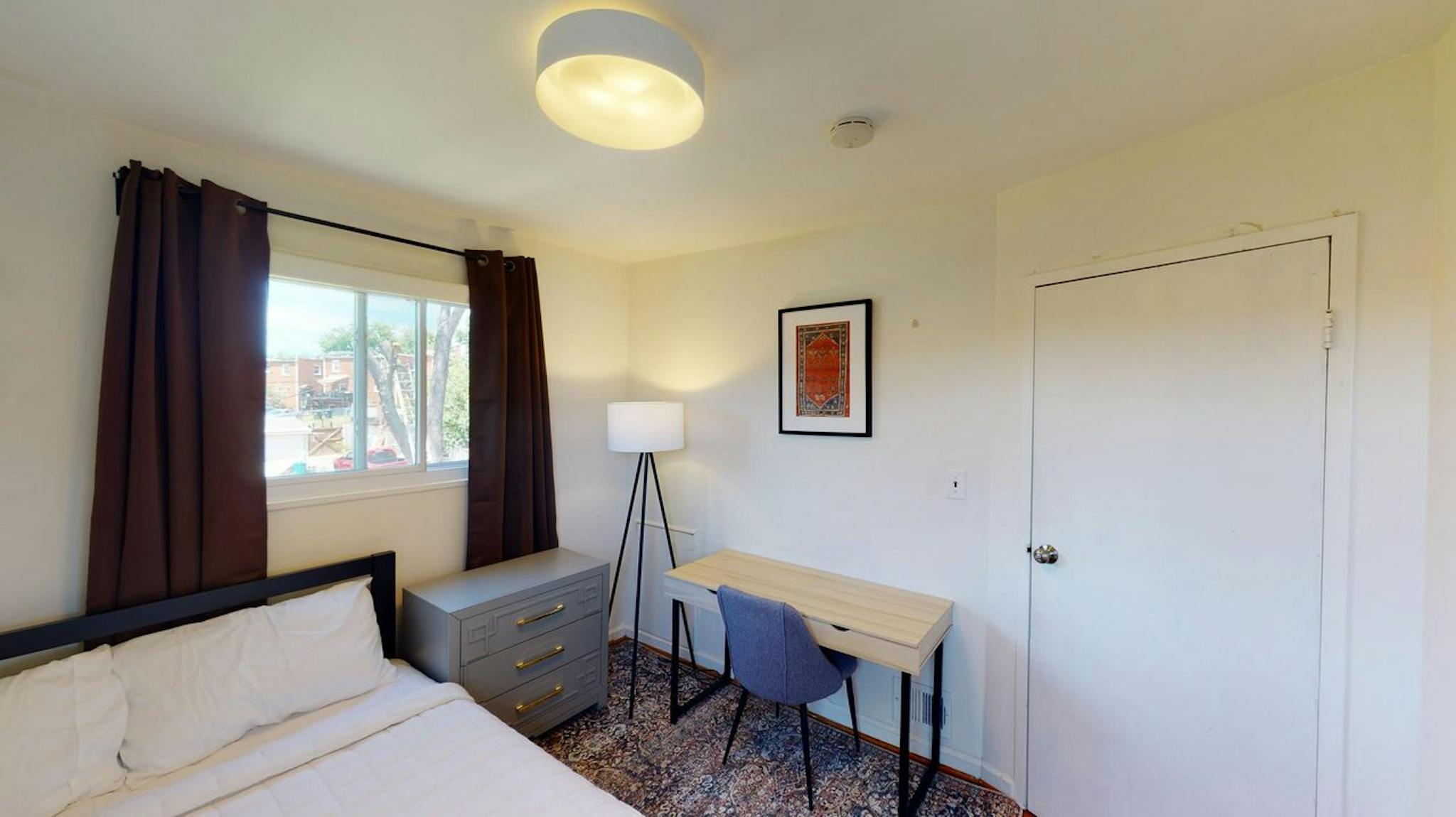 Newly renovated, this three-story townhouse apartment in Washington, D.C. is priced to rent quickly. At 1423-square-feet, this 4-bedroom, 2.5-bathroom shared unit is ideal for college students and working professionals looking for an affordable place to live several miles outside of Downtown. Sunlit and spacious, this Fort Totten apartment comes fully loaded with new stainless steel kitchen appliances, WiFi, a flat-screen TV, and a washer and dryer. Apartment features include central heating and air conditioning, freshly painted walls, hardwood floors, modern lighting fixtures, two kitchens, and a large front porch. This property includes a fenced-in backyard and ample paid parking for those that drive. If you are planning on living with friends or family, you have the option of renting this entire home. Rooms in this Fort Totten apartment may be fully furnished by June for an additional fee. The front door of this lovely brick home opens to an expansive living room with large windows and ample space for a sectional couch and additional furniture, such as a coffee table, chairs, and a media console. The eat-in kitchen on the first floor comes equipped with full-size appliances and offers enough space for a two-person dining table. The eat-in kitchen in (hidden)ment has a stainless steel refrigerator, microwave, and sink. Both kitchens feature custom cabinets for storage. Bedrooms in this D.C. apartment accommodate queen-size beds, nightstands, and personal workspaces or dressers. All four bedrooms offer windows and window coverings for natural light when needed and closets for storage. You have the option of having your room furnished or unfurnished. Bathrooms boast modern fixtures, single-sink vanities, and tile floors and walls. The bathroom on the second floor offers a bathtub shower combination, while the bathroom in (hidden)ment has been recently remodeled and includes a luxurious walk-in shower with a sliding glass door. Located approximately five miles from bustling D.C. neighborhoods like Penn Quarter, Fort Totten is home to a diverse demographic of families and single professionals. A perfect neighborhood for outdoor enthusiasts, Fort Totten offers walkable, tree-lined streets and plenty of urban green space for you to enjoy. Residents of Fort Totten have easy access to the Washington Metropolitan Branch Trail, a paved bike path that runs through this neighborhood and down to Capitol Hill. Affordable housing and its proximity to The Catholic University of America make Fort Totten a popular place to live among college students. Situated on a quiet, residential street near the main thoroughfare of South Dakota Avenue, this apartment is a short drive away from the nearby Walmart Supercenter on Riggs Road. A five-minute walk from the front door of this commuter-friendly home will get you to Fort Totten station for trains on the Red, Green, and Yellow lines of the Washington Metro.