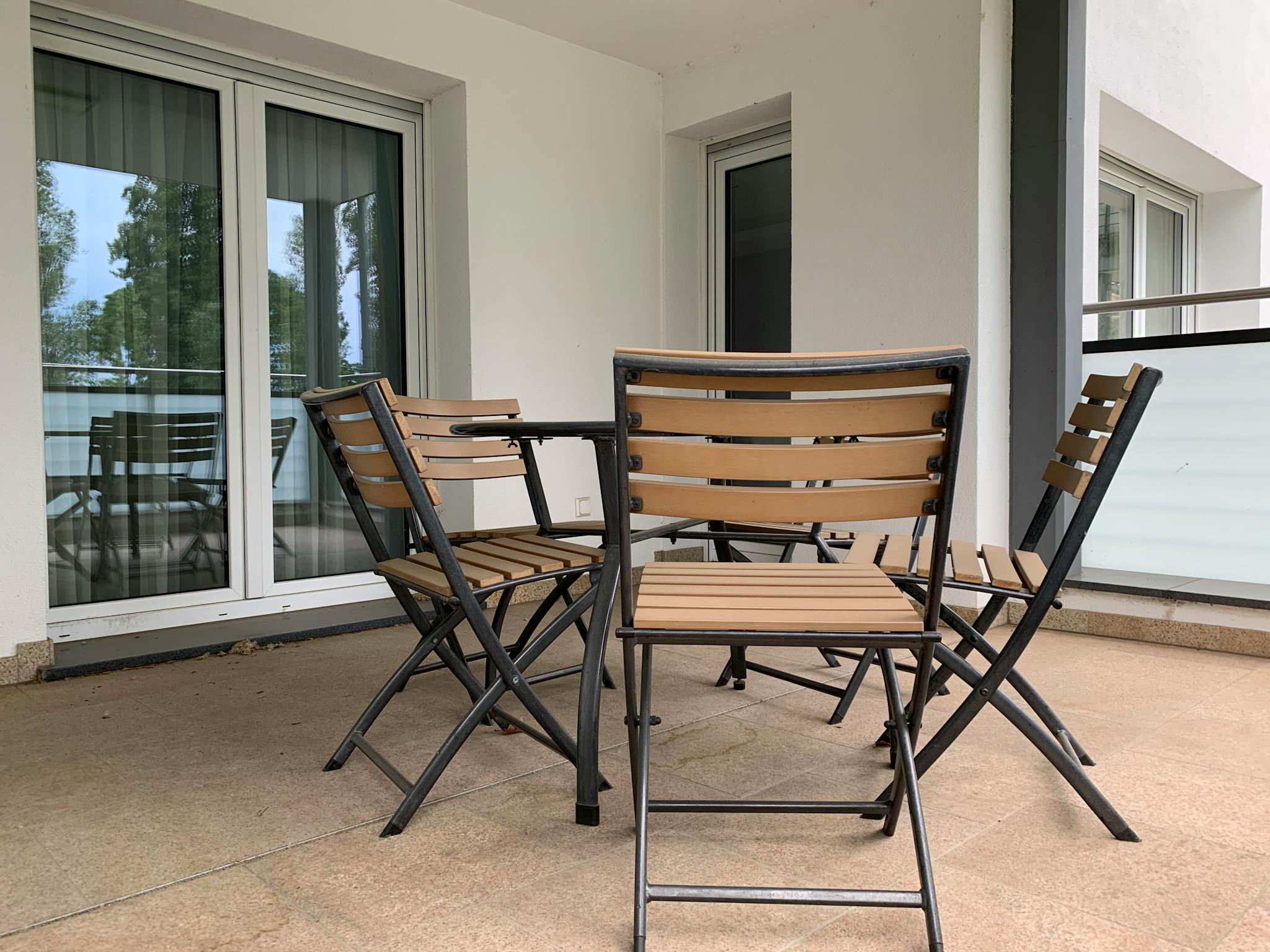 The residential floor is located on the raised ground floor. Massive granite stone awaits you in the entire apartment. The hall area offers access to all rooms of the apartment. The living room with dining or working area as well as the spacious bedroom allow direct access to the balcony with a dream view of greenery and the Rhine. A comfortable sofa bed can be found in the living room and can be used if required. The bedroom with its double bed offers space for two people and is additionally equipped with a large wardrobe and a sideboard. A modern fitted kitchen is equipped with all necessary kitchen utensils. It has a stove with a ceramic hob, oven, extractor hood, dishwasher, as well as upper and lower cupboards. The bathroom is tiled with marble up to the ceiling and equipped with a shower. The washing machine is also located here. All windows are equipped with electric shutters.
