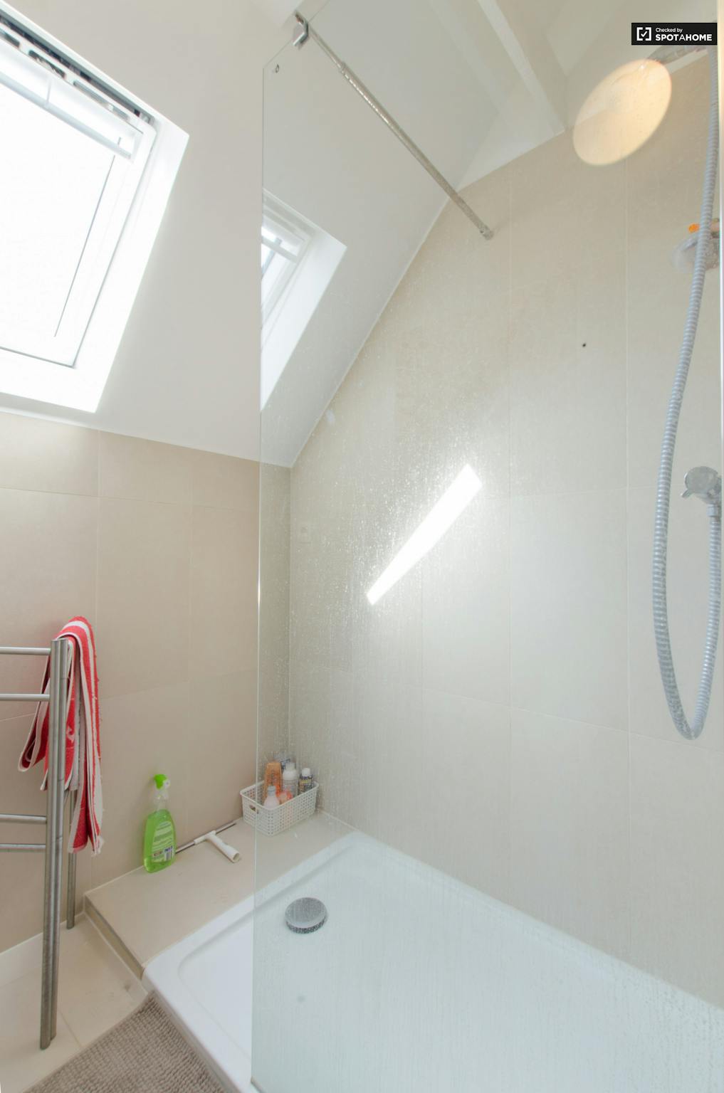 Chaque salle de douche et wc à partager à 2. La cuisine privée entièrement équipée à partager entre les 4 locataires.
