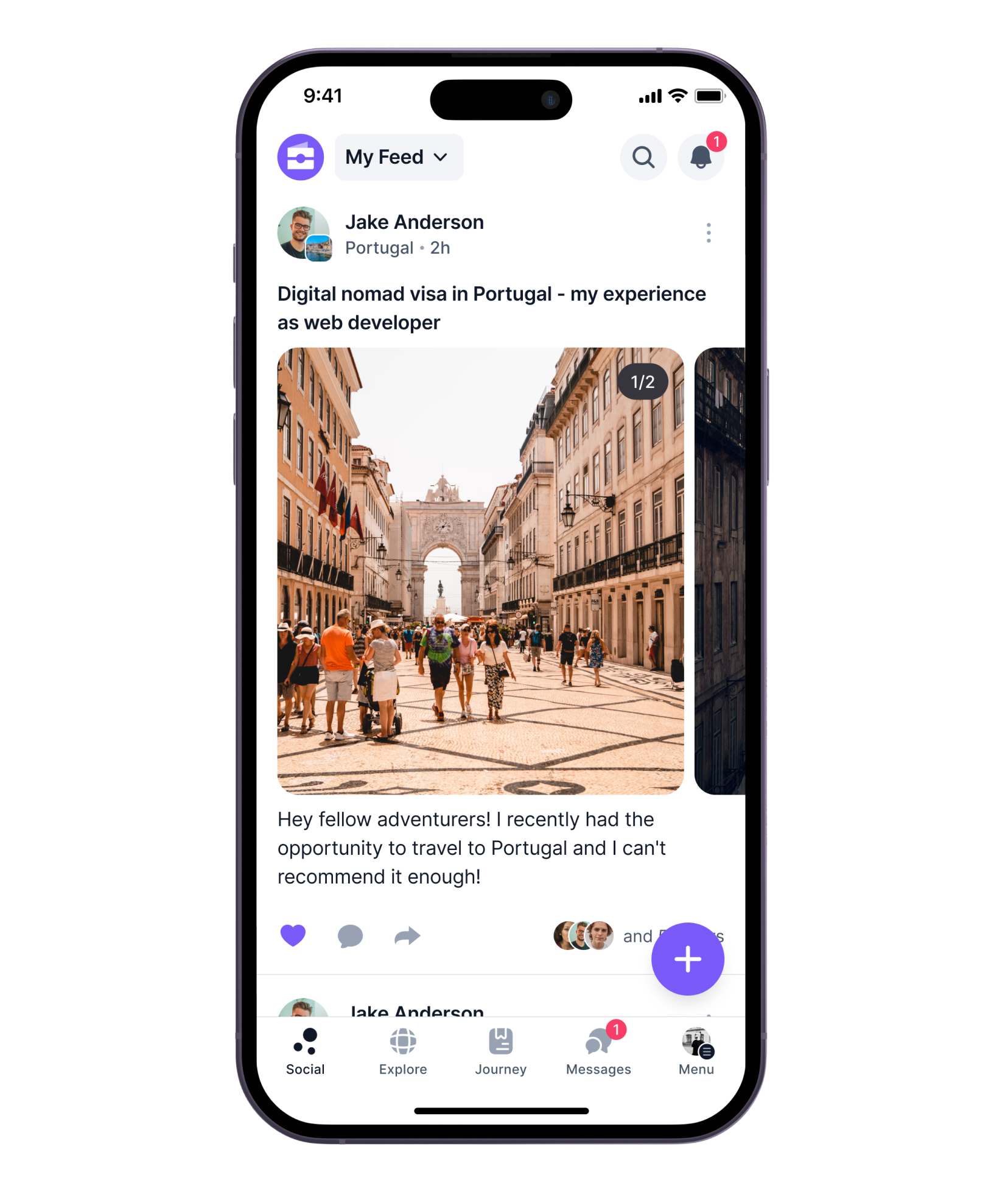 Explore different visas in various countries, purchase insurance and e-sims, engage in a community of digital nomads and remote workers, connect with people nearby, chat in messages with others and even find a place to live!